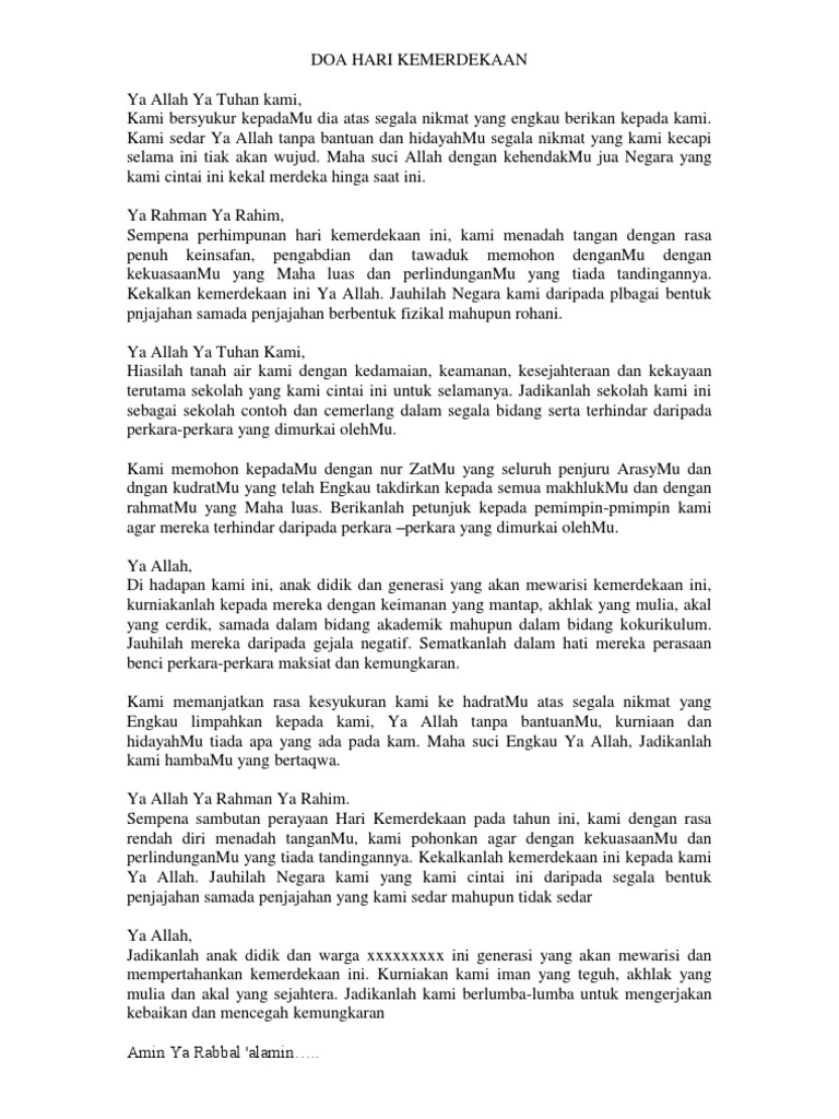 Doa majlis hari kemerdekaan ya allah ya tuhan kami tuhan yang menguasai langit dan bumi. We identified it from reliable source. Teks Doa Kemerdekaan Doa Hari Kemerdekaan Doa Penutupan Bulan Kemerdekaan Semoga.