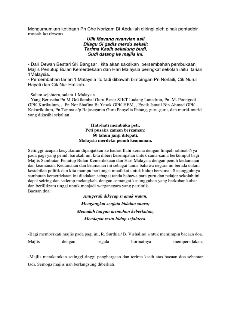 Teks Mc Majlis Penutupan Bulan Kemerdekaan 2016 Skbl2 Pdf