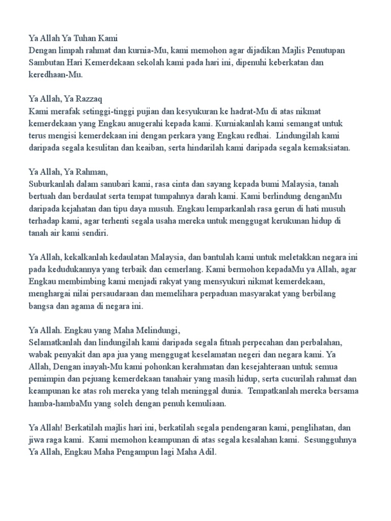 Doa Majlis Penutupan Bulan Kemerdekaan Pdf